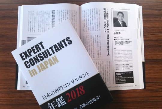 「日本の専門コンサルタント年鑑2018」~各業界・分野・手法別の実力コンサルタント75人を厳選収録した、経営陣必携の実用書~に、弊社代表 工藤が掲載されました。